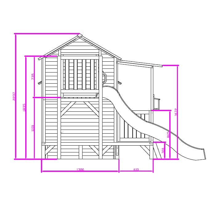 - The Cubby House must be assembled on a solid levelled surface, as well as be able to drain water away quickly